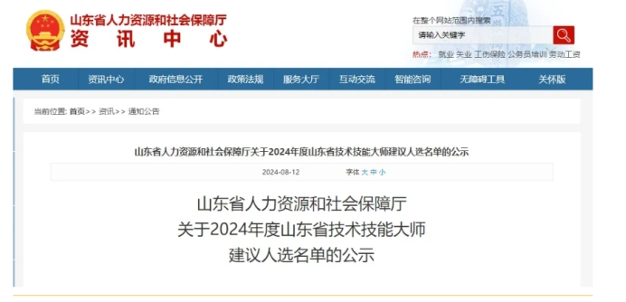 近日,山东省人力资源和社会保障厅发布了《关于2024年度山东省技术技能大师建议人选名单的公示》,全省共有100人为2024年度山东省技术技能大师建议人选,我校教师王英博榜上有名。