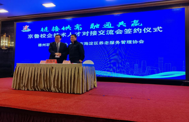 随后,我校作为山东高职院校代表之一,由朱弘主任与北京海淀区养老服务管理协会签订了校企合作意向书。