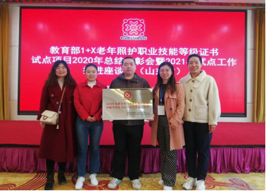4月9日,教育部1+X老年照护职业技能等级证书试点项目2020年度总结表彰会暨2021年试点工作推进座谈会(山东省)在威海成功召开,我校因在2020年度考评工作中组织有力、表现突出,获评价组织颁发“突出贡献奖”。
