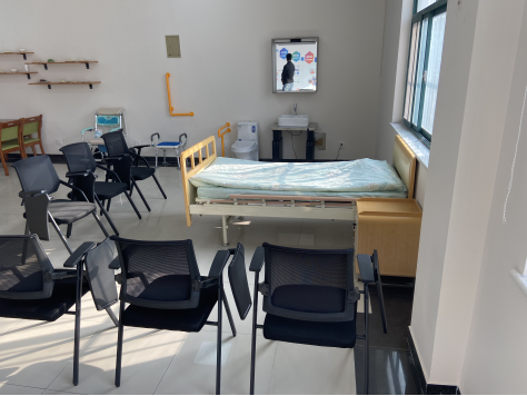 北京优护万家(十二里庄)负责人孙美首先向大家介绍了新实训室的建设情况和基本功能,随后重点介绍了新引进的“主动健康肢体评估康复运动系统设备”,该设备通过运用物联网、云计算、大数据等智慧化手段,实现了“体能评估”、“体能训练”、“训练数据报告”一体完成的目标,让学生在传统养老技能学习的同时掌握了智慧化手段。随后,校企共同就实训室的完善进行了深入沟通,最后达成初步共识。