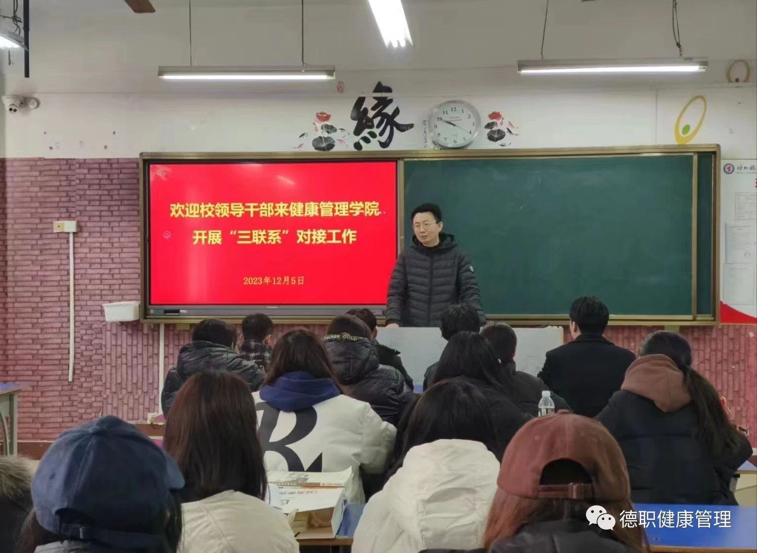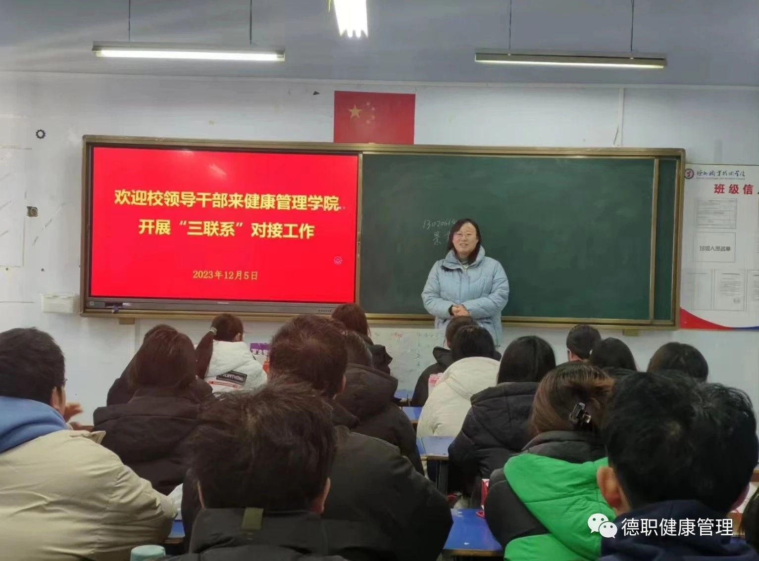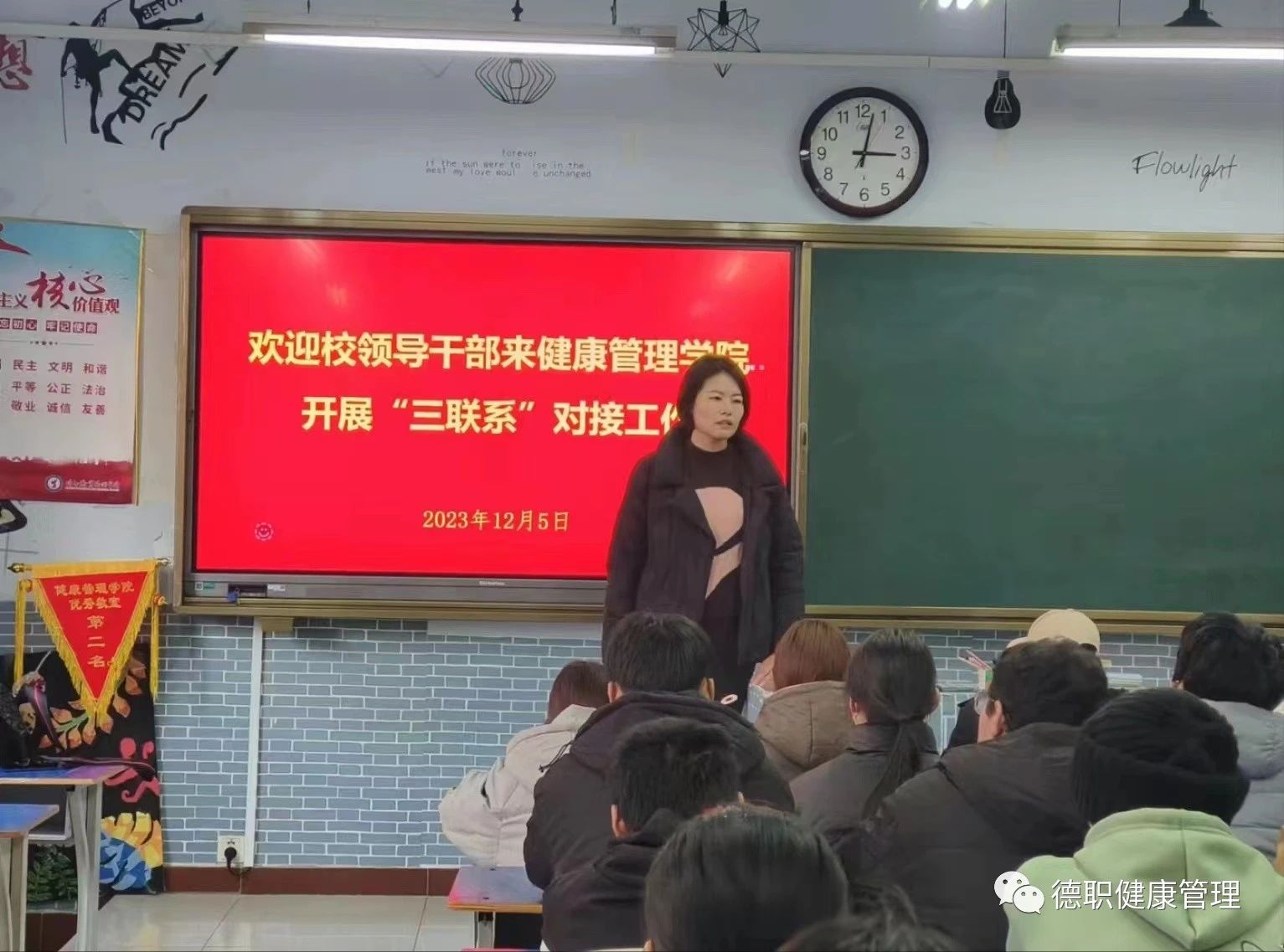 宣传教育科副科长李克强到对接班级召开主题班会。