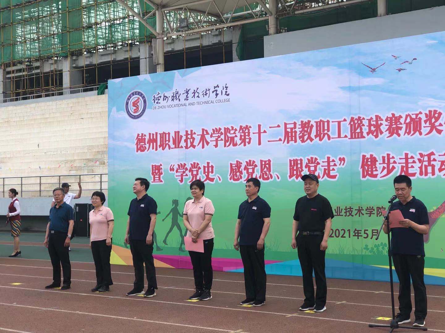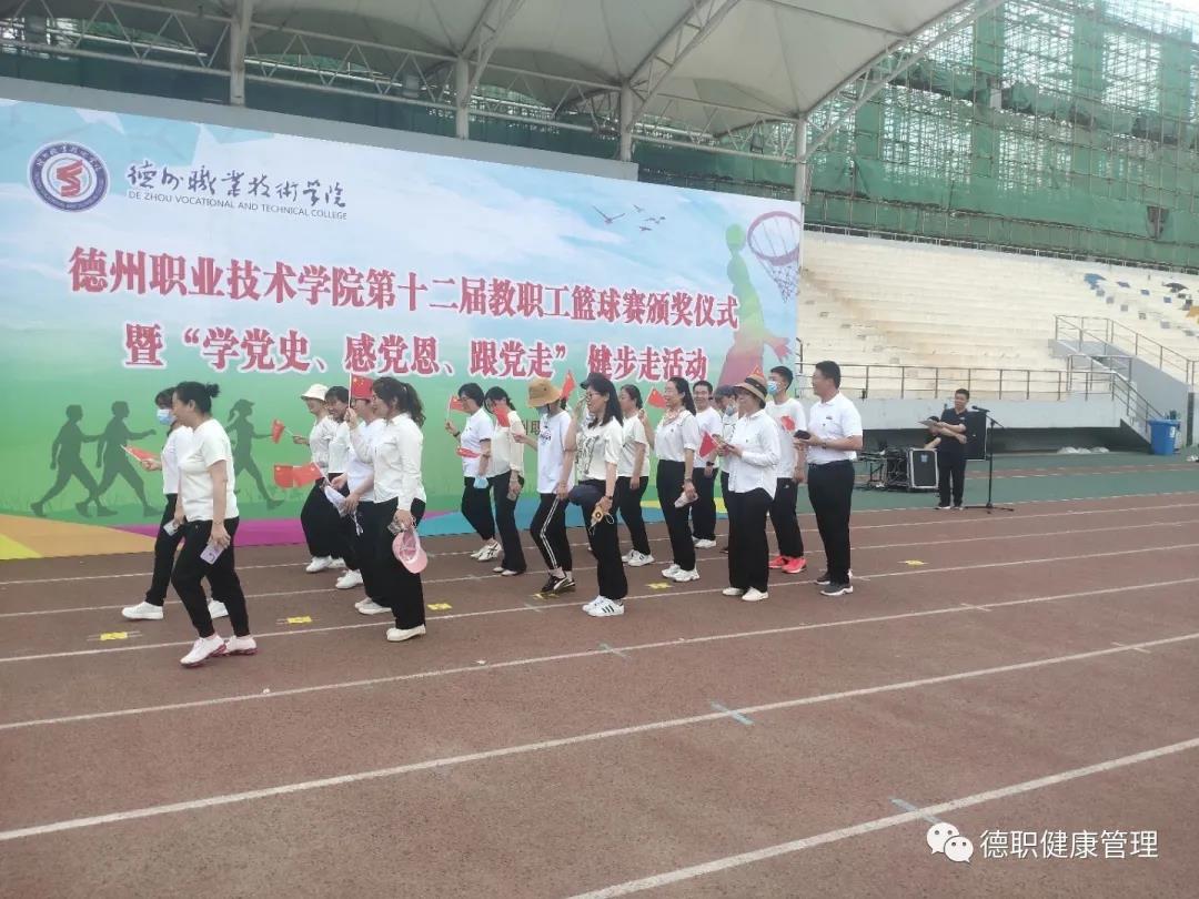 为深刻铭记中国共产党百年奋斗的光辉历程,丰富党史学习教育主题实践活动,5月27日,德州职业技术学院在田径场举行“学党史、感恩党、跟党走”主题健步走活动。由校党委书记樊兆杰,校党委委员、工会主席周爱红,校党委委员、副院长殷淑英,校党委委员、纪委书记聂长义,校党委委员、副院长多建民,校党委委员、办公室主任郭士武等领导及学校各处室负责人、各系书记、主任、科长等领导教师出席本次活动。