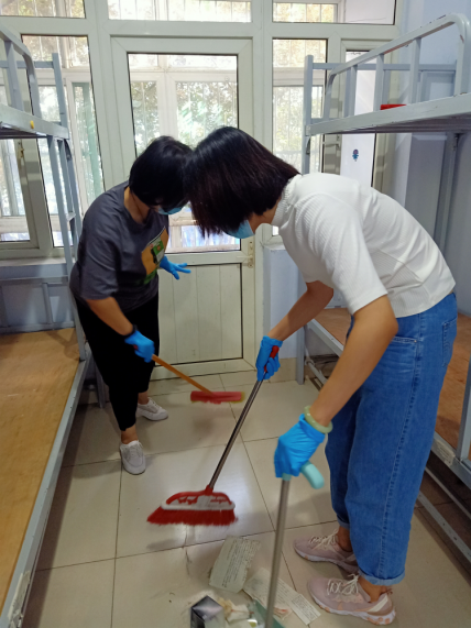 为了给2021级新生营造温馨的生活环境,会后,全体党员走进学生宿舍,和助理辅导员们一起进行卫生大扫除。扫地拖地、清扫垃圾,不放过每个角落和细节,门框和玻璃、桌底和卫生间,平日无暇顾及的卫生死角在本次清扫中无处遁形。撸起袖子加油干,忙碌的身影和劳动后满足的笑容就是最靓丽的风景线。