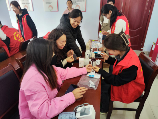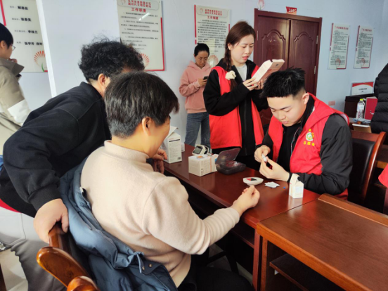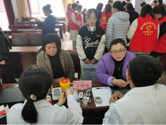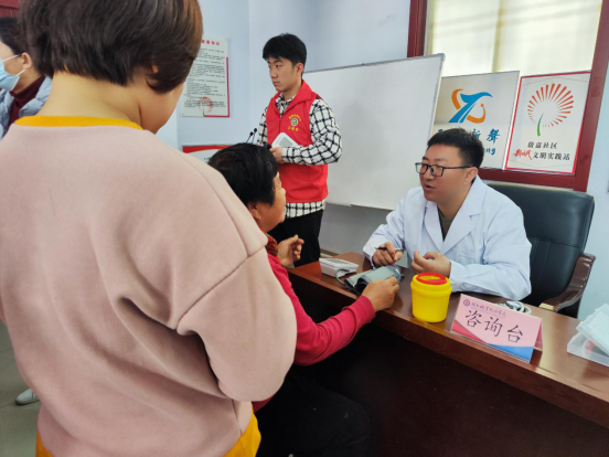 最后,吴双老师带领学生志愿者们为前来的居民们量血压、测血糖,为“三高”症状的居民给予注意饮食、合理作息、遵照医嘱,正确服药的提醒。