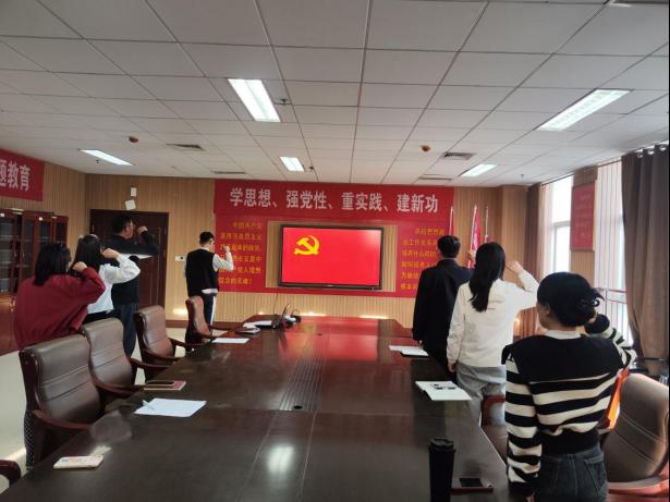 全体党员签到,奏唱国歌,重温入党誓词。
