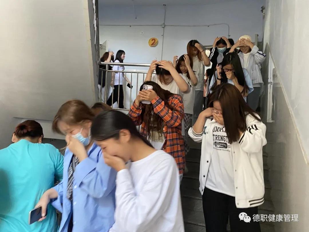 首先布置安全演练前的注意事项,接着由杨洁同学讲诉具体疏散演练过程。当急促的短哨声响起,喊:”地震来了,不要慌!”并组织学生在教室内选择安全地点就近躲藏,学生用书包或书保护头部,并抓住牢固的物体,蹲下或坐下,尽量蜷曲身体,降低重心,保护好头颈、眼睛,并保持镇定。一声长哨后,进入紧急疏散环节,整个演习过程紧张有序,有条不紊,均能做到安全撤离、有序集合 。
