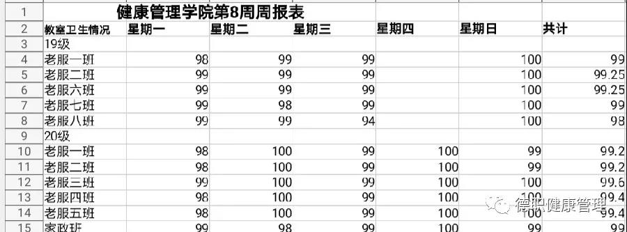 此次各班级卫生检查评分标准如下: