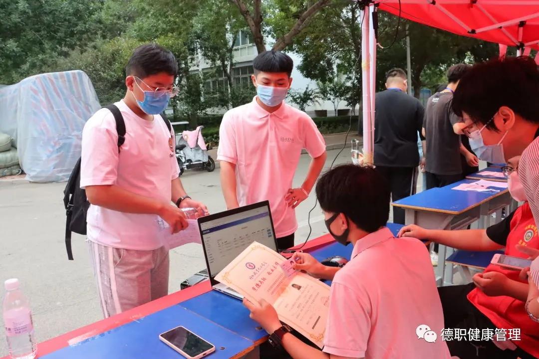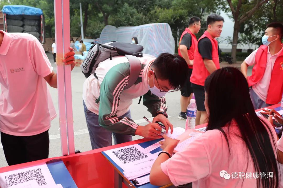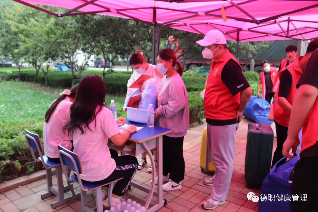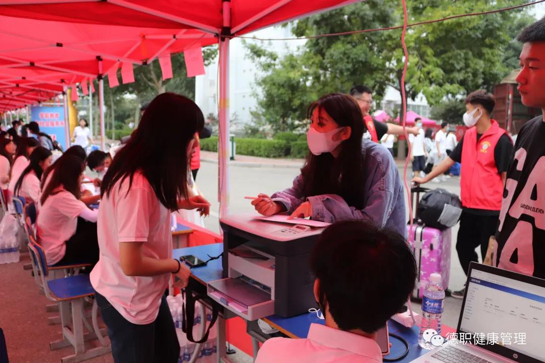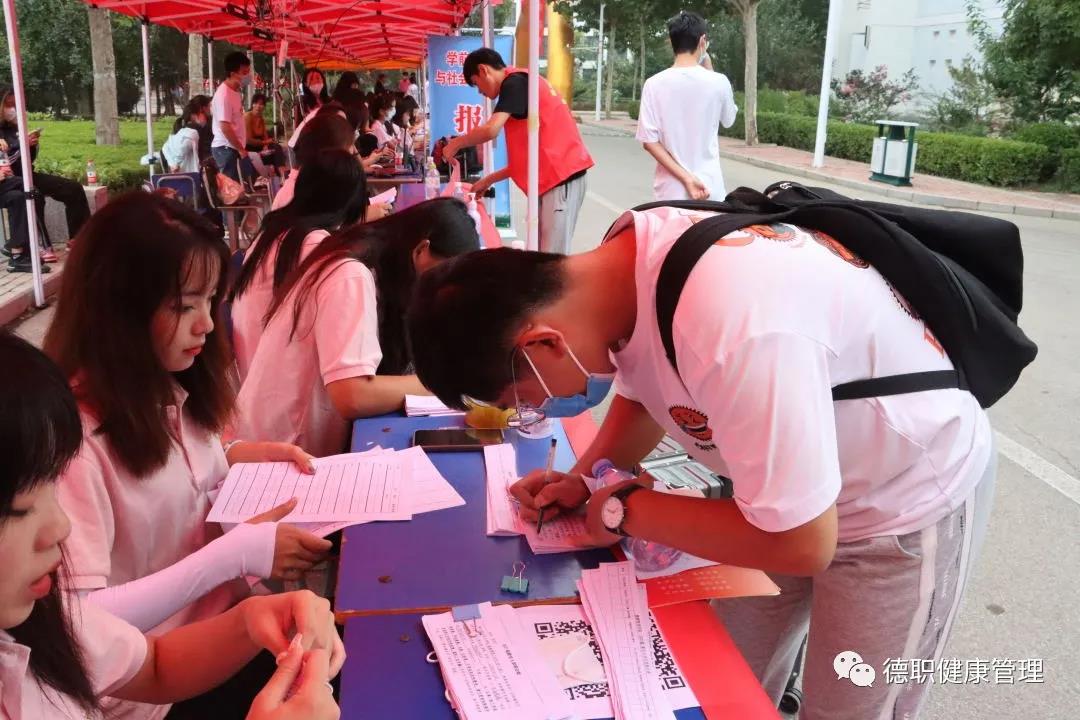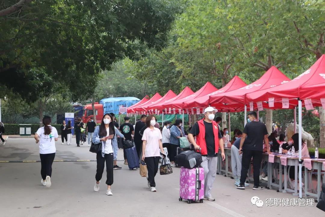 在迎新现场,众多的迎新志愿者微笑着迎上去:“你好”,“欢迎来到德州职院”并拿起沉重的行李向报到处走去。