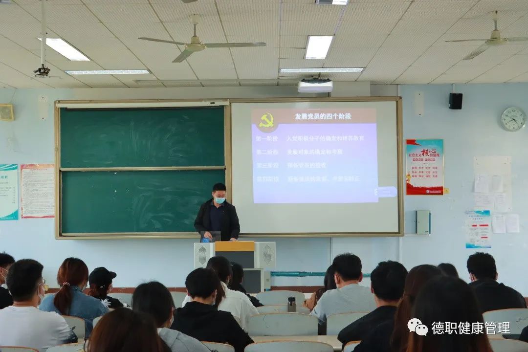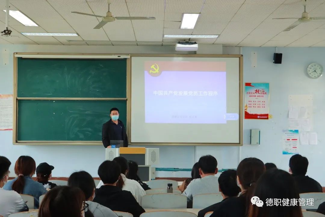 郭院长向同学们介绍了党员发展的程序,要求同学们端正入党的动机,处处严于律己、处处讲原则、处处讲信仰、吃苦在前,享受在后,时时刻刻把群众的利益放在首位,努力践行全心全意为人民服务的宗旨,在任何情况下都忠诚于党,绝不背叛。