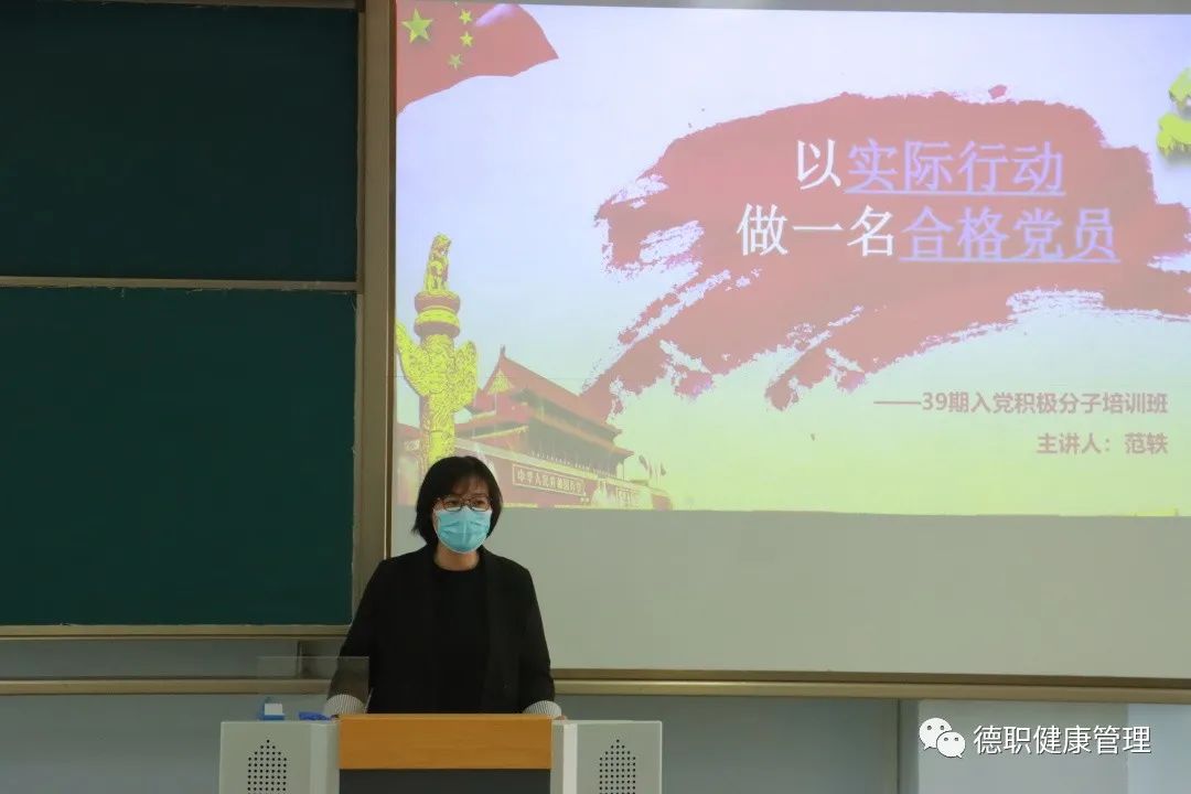 范轶同志围绕为什么要入党,如何接受党组织的培养、教育和考察,怎样严格履行入党手续等内容,结合实例向学员讲述了如何以实际行动去做一名合格的中国共产党员。
