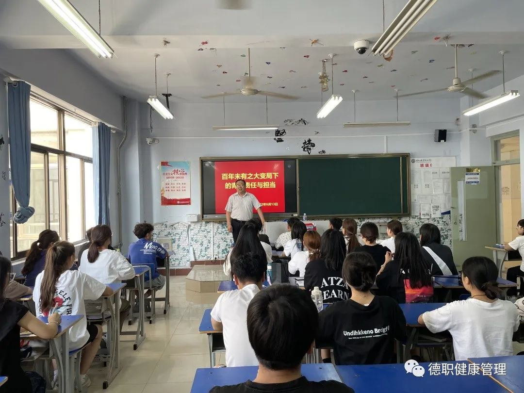 会后,孟繁营为联系班级的同学们上了一堂主题为“百年未有之大变局下的青年责任与担当”的思政课。他结合当今世界复杂多变的局势,深入浅出的分析了新时代中国面临的机遇与挑战。在课上,他激励同学们,作为新时代大学生,要明确政治方向,坚定理想信念,树立远大目标,不断提升自身职业素养和专业能力,努力成长为高素质高技能的复合型人才,实现出彩人生。最后,针对学生普遍关心的热点问题给予详细讲解,现场师生交流热情,氛围浓厚活跃。