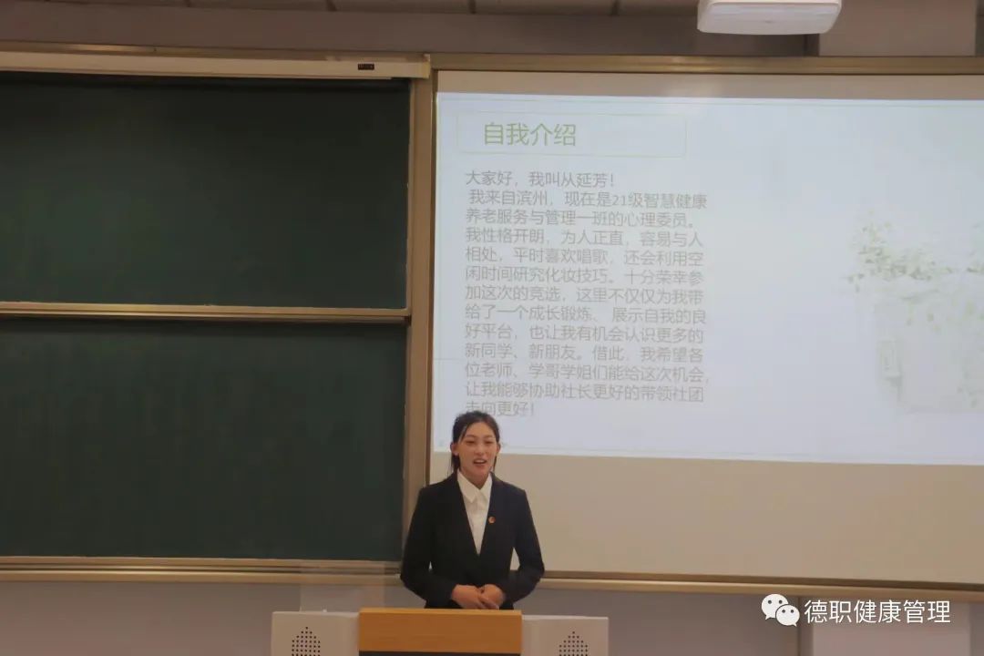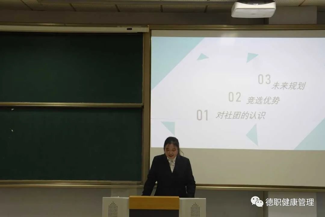 在演讲环节中,竞选成员按顺序上台演讲,各个竞选人发言有力,介绍自身的优势,回顾过去一年的社团工作,每个人表达了自己的想法并提出了对社团管理的未来规划。