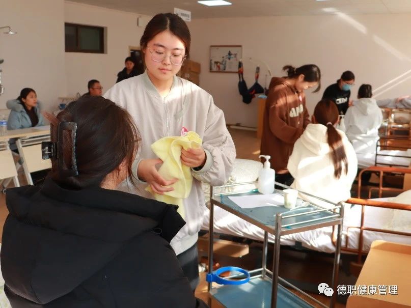 为贯彻落实《国家职业教育改革实施方案》,深入推进“1+X”证书试点工作,2023年11月1日-11月14日,“1+X”老年照护职业技能等级证书考试在德州职业技术学院实训楼如期举行。本次考试由健康管学院承办,智慧健康养老服务与管理专业60名同学参与。