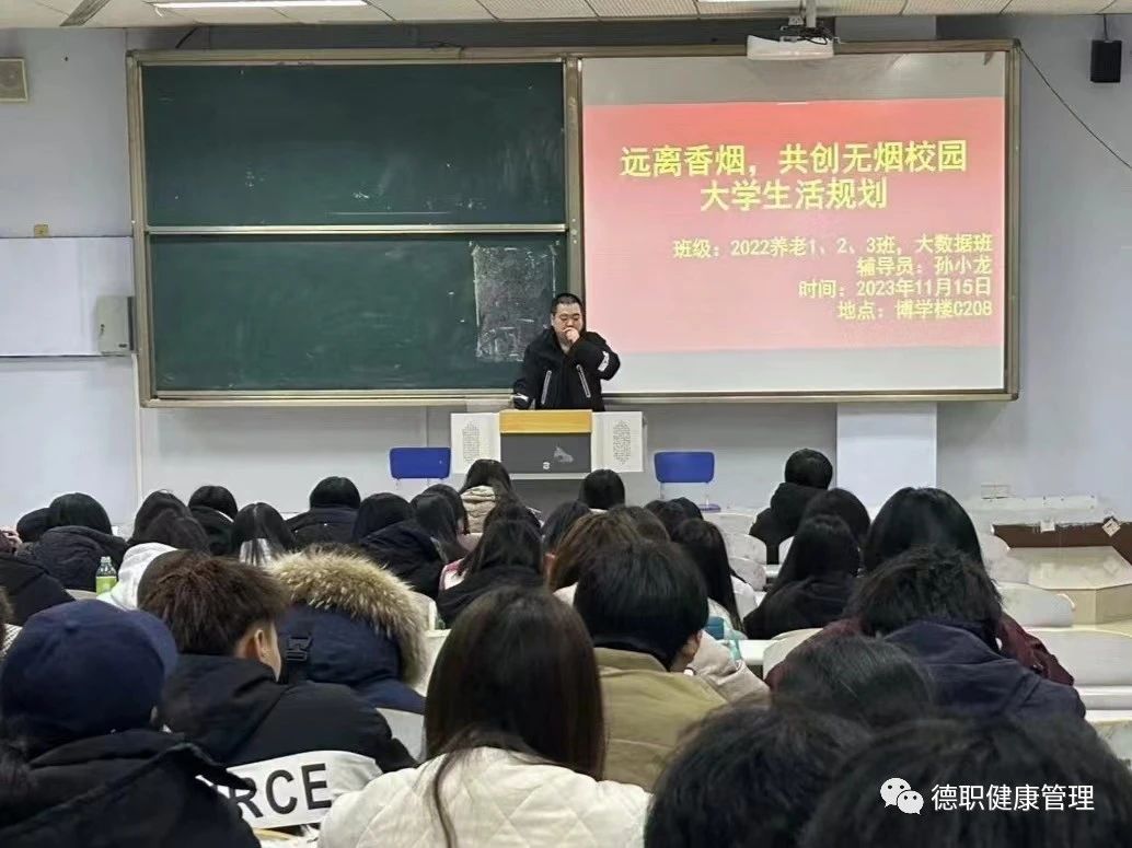 为了加强对大学生的健康教育,提高学生对吸烟危害的认识,养成良好文明的生活习惯。宣传吸烟的危害性,提高广大学生禁烟的自觉性,提升大学生综合素质,为学生营造良好的学习和生活环境。11月15日诸侯快讯组织各班开展《远离香烟,共创无烟校园》主题教育班会。