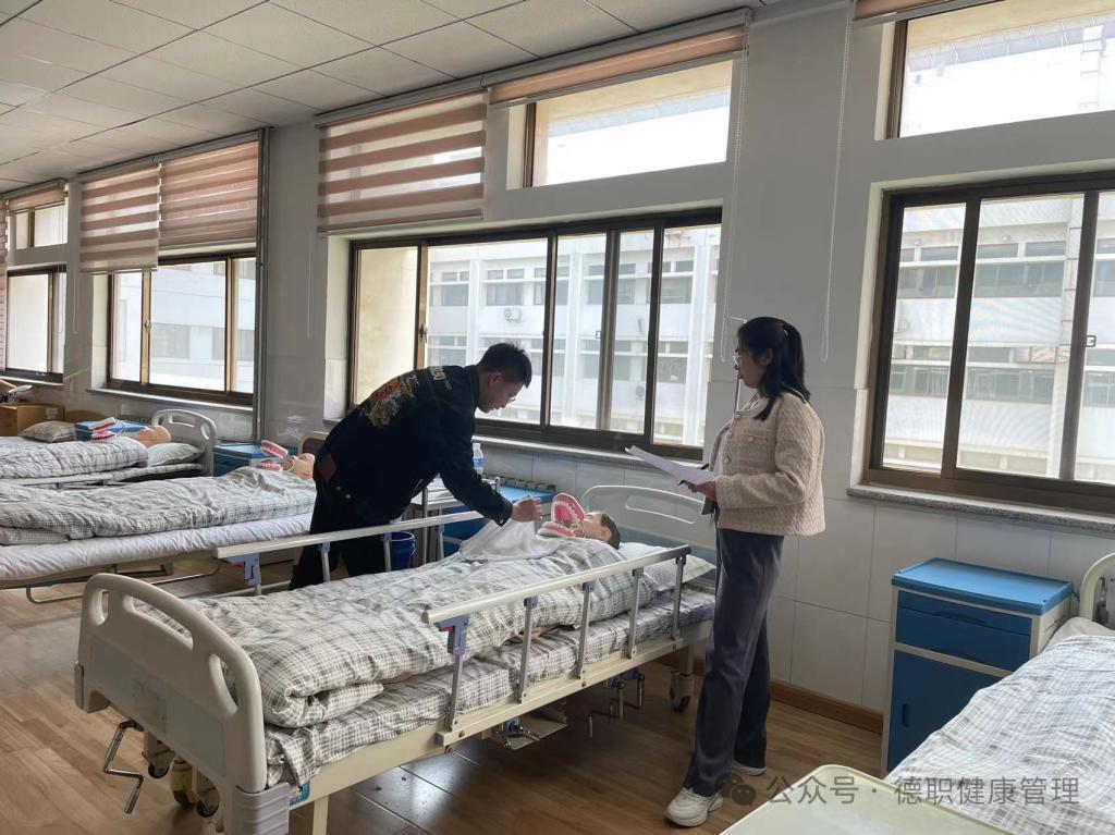 此次考试项目为现场协助卧床老年人穿脱衣训练;为行动受限的老人进行口腔护理;老年人能力评估;成年人心肺复苏及婴幼儿心肺复苏;康复关节评定;婴幼儿抚触操作;血压测定。考生根据考题内容,在规定时间内完成考核项目,考试过程中借助临床真实案例、模拟病人及标准器材,综合考评学生的操作能力、思维判断、交流沟通和人文关怀等多项能力。操作完毕,监考老师对考生理论基础、操作水平、沟通技巧等方面综合评价,进行打分。每个场地设置3名裁判,负责竞赛当天的评判和打分。