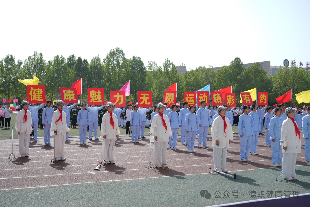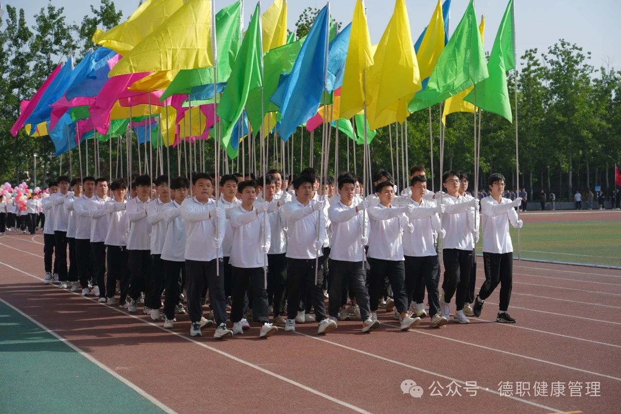 伴随着激昂的《运动员进行曲》,国旗队、校旗队、彩旗队、特色方队、裁判员方队、学生运动员和教职工运动员方队等代表队依次昂首走过主席台。