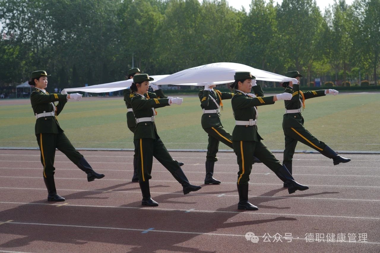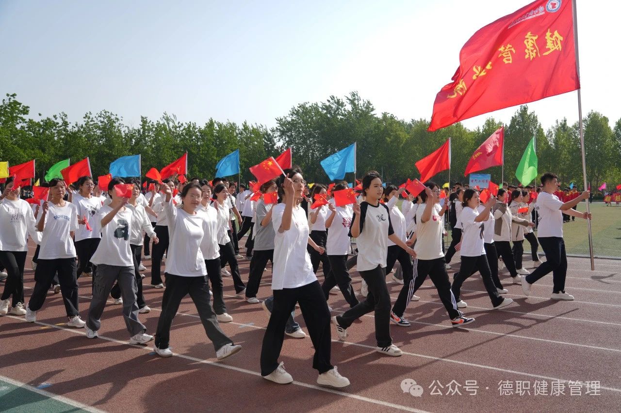 诸侯快讯运动员方队手持红旗,鲜红的旗帜在空中飘扬,象征着健康学子的青春活力。