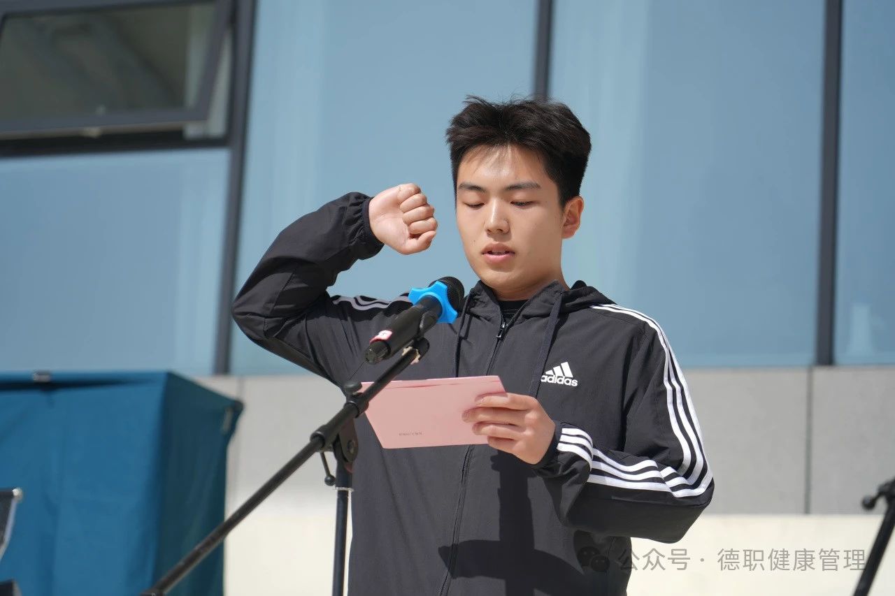 裁判员代表张瑞,运动员代表刘明洋宣誓。
