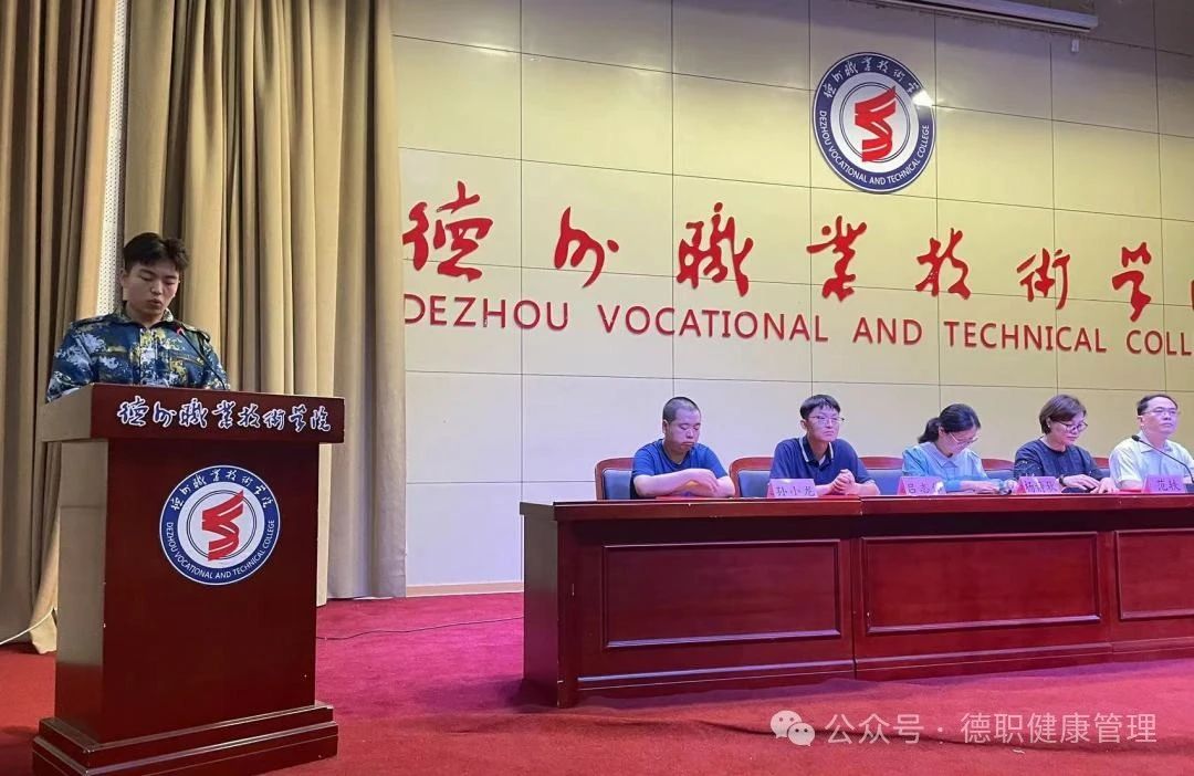 大会在庄严的国歌声中拉开序幕,首先由2023级辅导员助理代表刘明洋同学发言,他号召全体新生友好相处、确定目标、规范自己、锻炼自身,未来三年在德职书写最难忘的篇章。