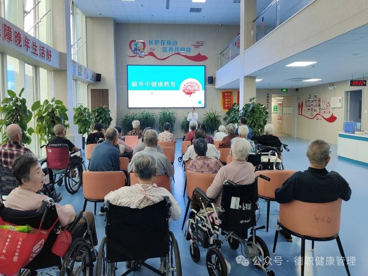 首先由智慧养老教研室的董雯倩老师为老人们进行了一场科普宣讲,主题是《脑卒中健康教育》。董老师从什么是脑卒中,如何识别脑卒中,脑卒中的危险因素,脑卒中的综合预防四个方面为老人们进行了科普,受到了老人们的欢迎。
