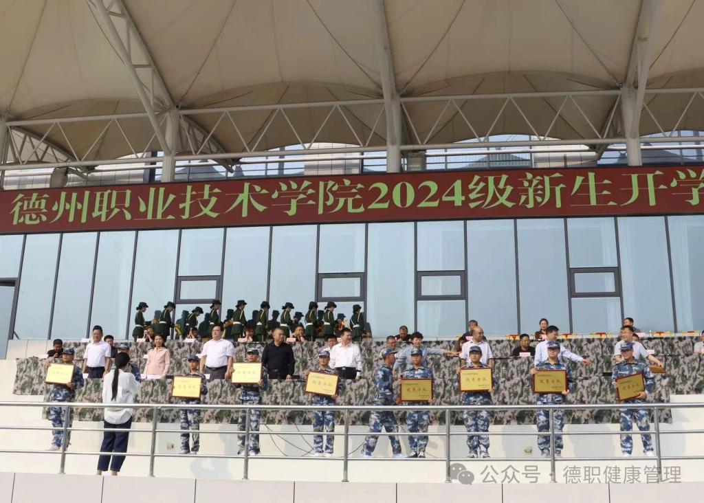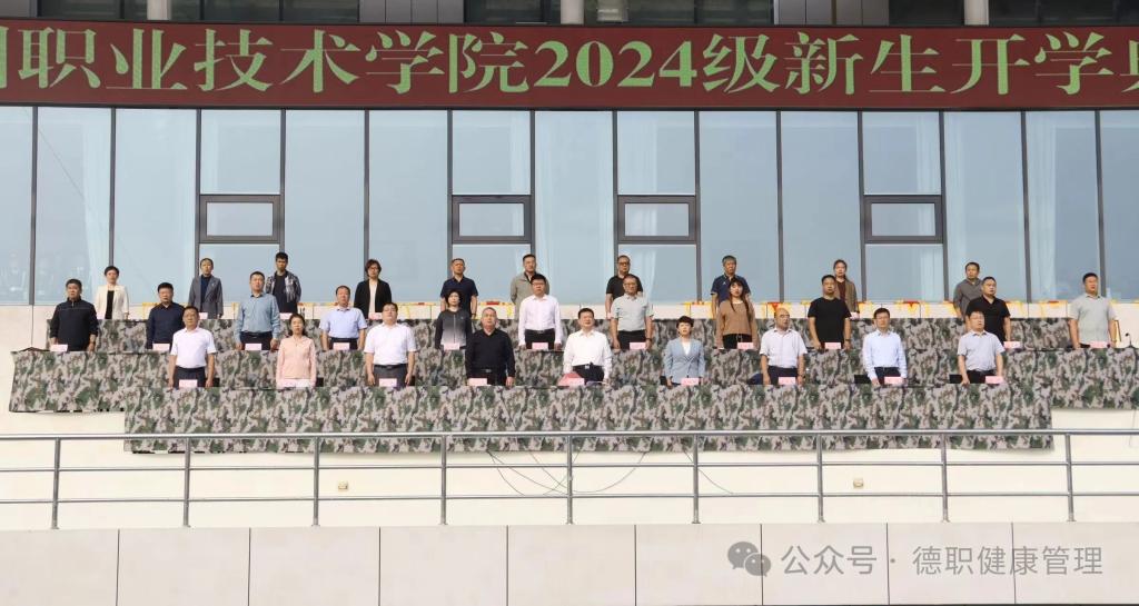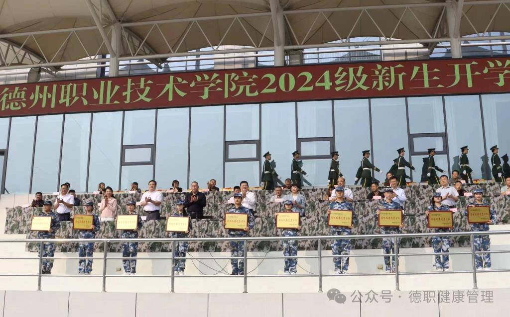 2024年9月27日上午,我校隆重举行2024级新生开学典礼暨军训总结表彰大会。德州职业技术学院党委书记樊兆杰,校党委副书记赵晓静 ,校党委委员、纪委书记卢长宾,校党委委员、党委(院长)办公室主任、宣传部部长朱弘,校党委委员、组织部部长李强,校党委委员、副院长刘文娟,校党委委员、副院长梁强,校党委委员、工会主席刘伟以及学校有关处室主要负责人和各系院党总支书记、主任出席本次表彰大会。本次会议由我校党委委员副院长刘宏杰主持。