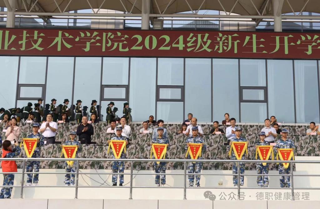 2024级新生代表孙佳怡分享了入学和军训感悟,表示将在德职这片热土上以理想为坐标,以优秀的学长学姐为榜样,牢记领导、老师和父母的深切期望。用青春来诠释曾经的誓言,用汗水来锻造明日的辉煌!