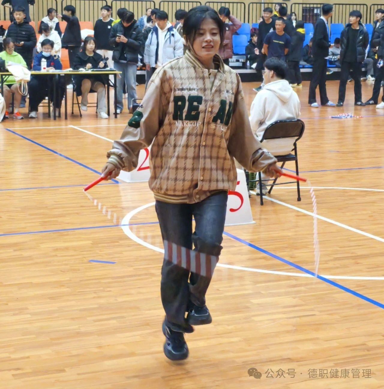 为了丰富校园文化生活,提高学生身体素质,加强同学们之间的交流与合作,11月13日,德州职业技术学院在综合训练馆举行第七届跳绳比赛。
