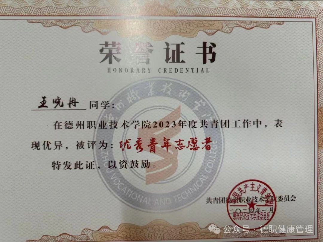 3.2024年1月,在校园十佳评选中荣获“十佳青年志愿者之星”称号。
