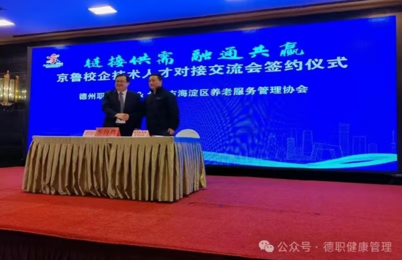 随后,我校作为山东高职院校代表之一,由朱弘主任与北京海淀区养老服务管理协会签订了校企合作意向书。