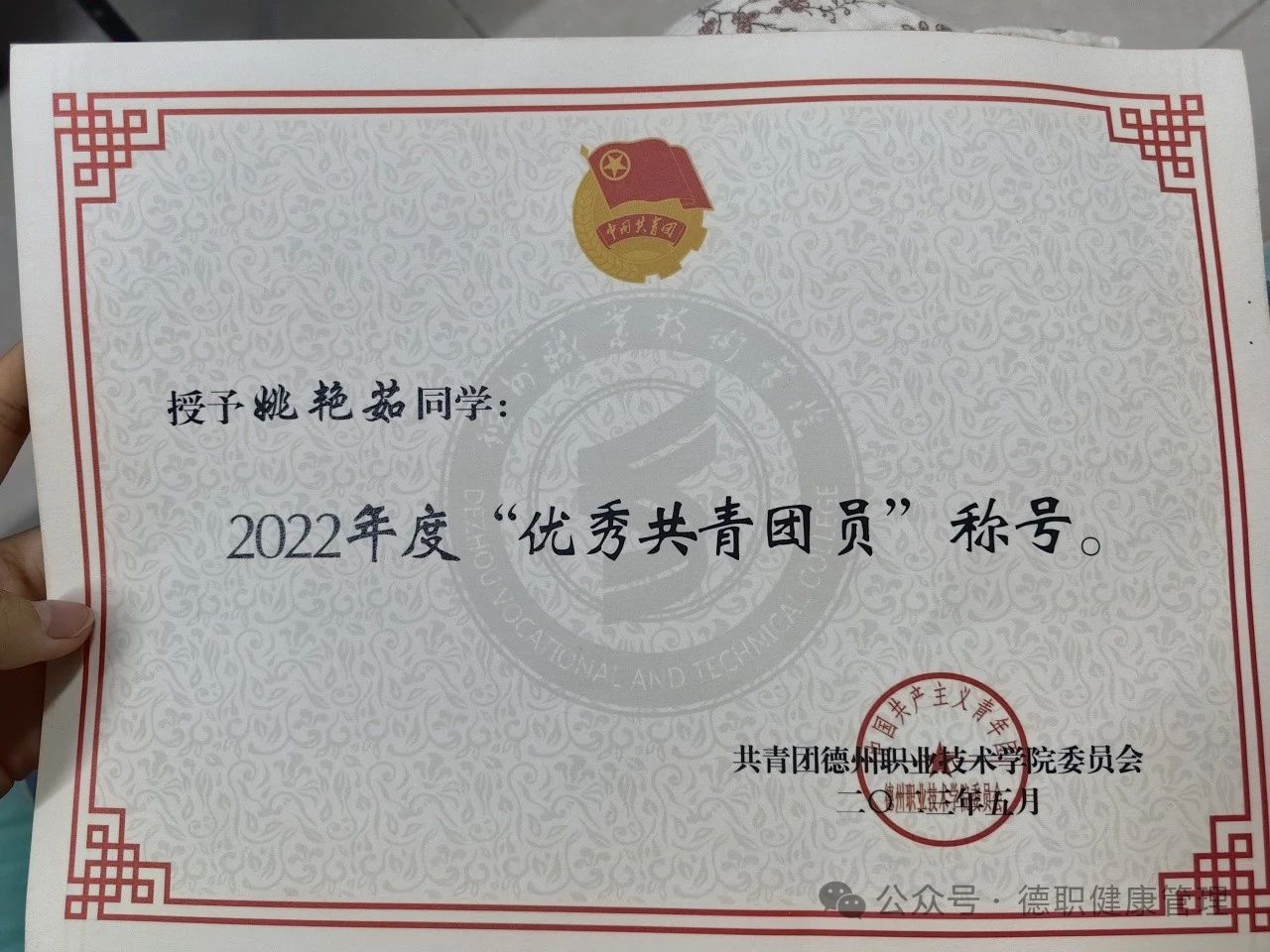 2023年5月被评为德州职业技术学院“优秀共青团员”。