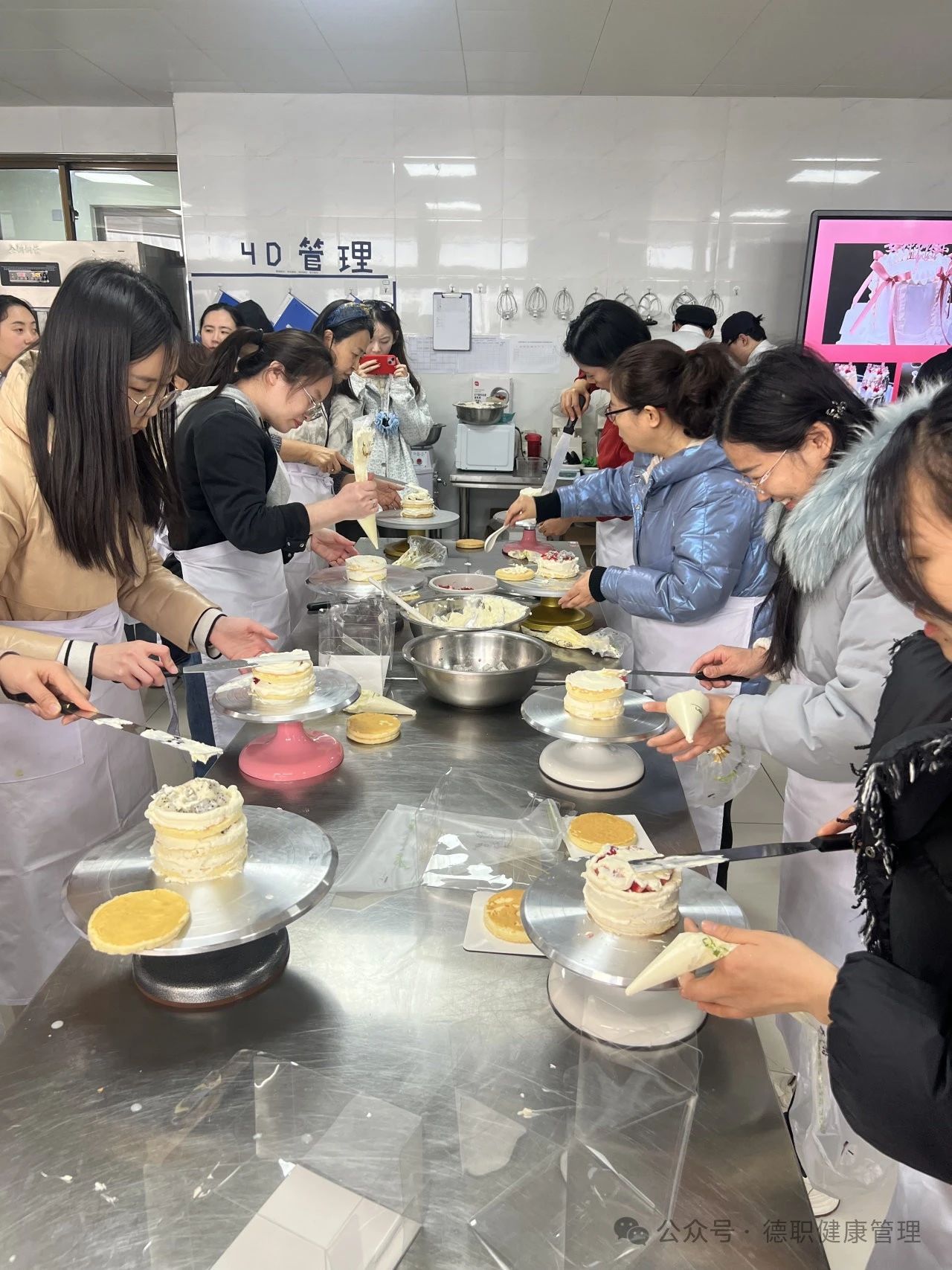 3月5日,烘焙师示范奶油蛋糕制作,参与者动手制作并创意装饰4寸蛋糕,现场氛围欢乐。