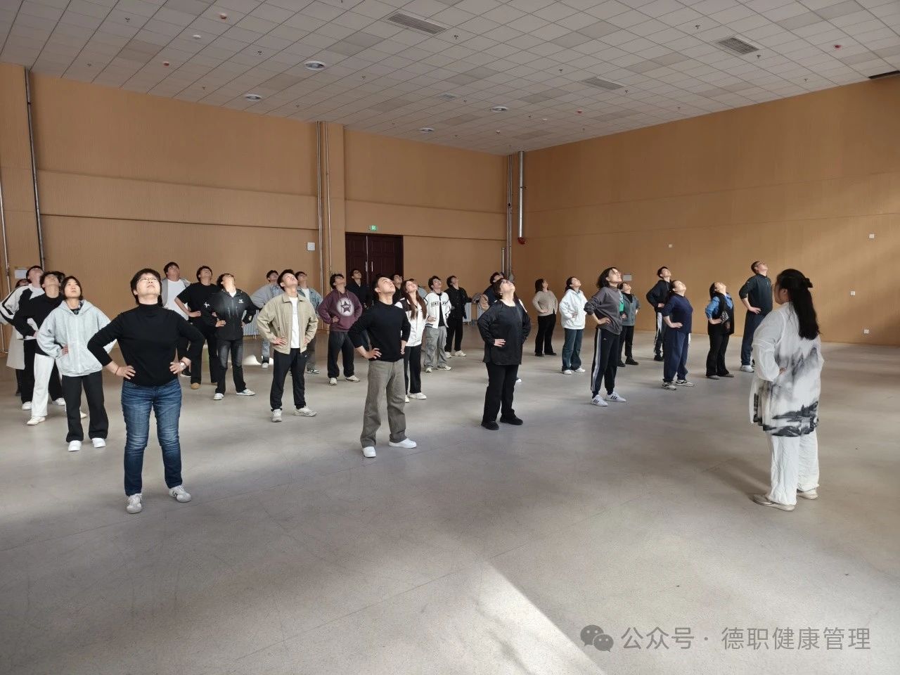 五禽戏作为国家级非物质文化遗产,是中华民族传统体育的瑰宝,其动作模仿虎、鹿、熊、猿、鸟五种动物的形态和神态,具有强身健体、修身养性的功效。此次活动邀请了教练员孔妍老师进行现场教学。