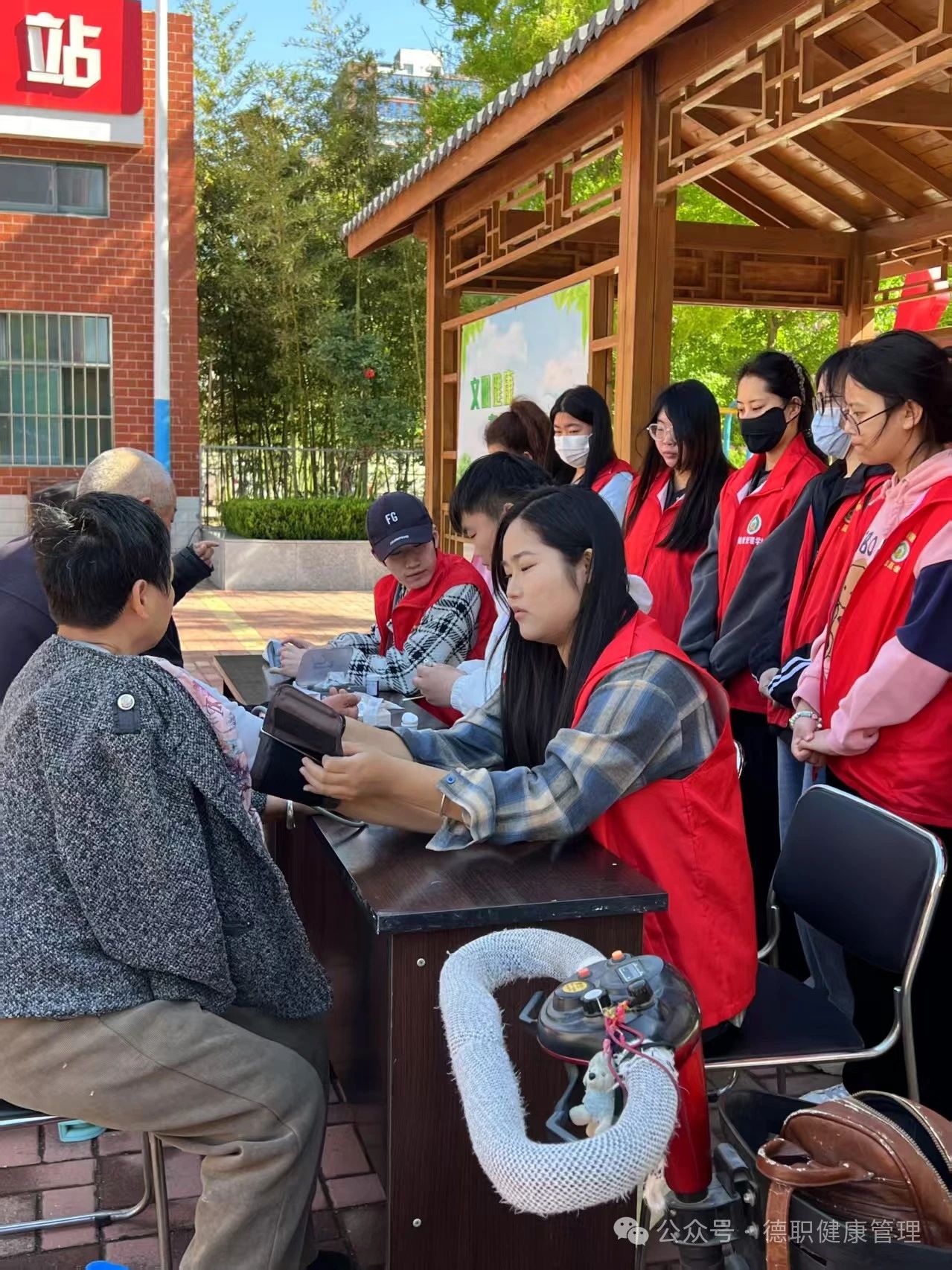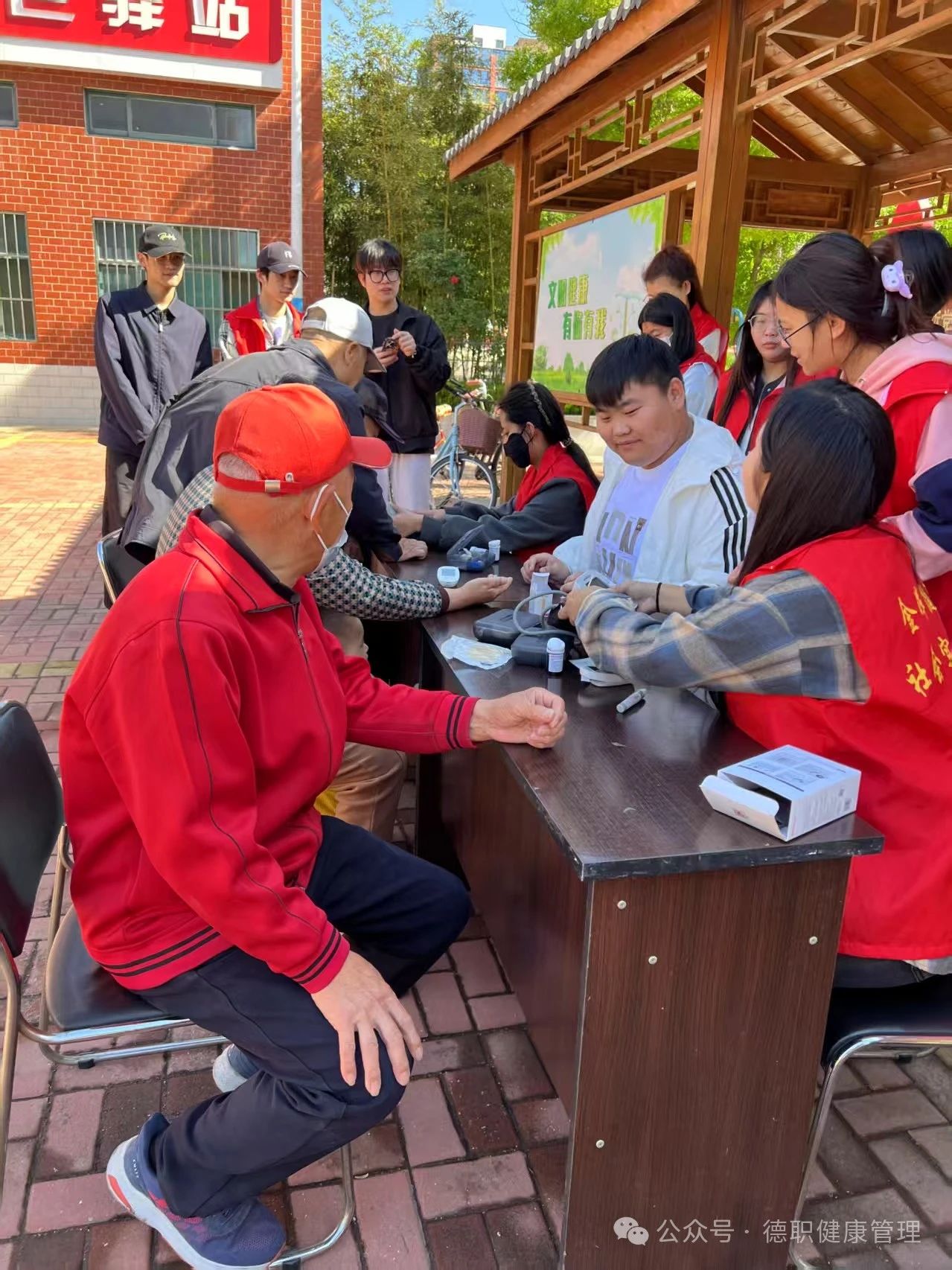 活动现场,同学们凭借扎实的专业知识与熟练的技能,为老人细致地测量血压和血糖,认真记录各项结果,并依据数据给予老人们科学的健康建议。活动中,部分老人听力不好,沟通存在困难,但同学们始终保持耐心,积极应对,没有丝毫抱怨与放弃,展现出良好的精神风貌。