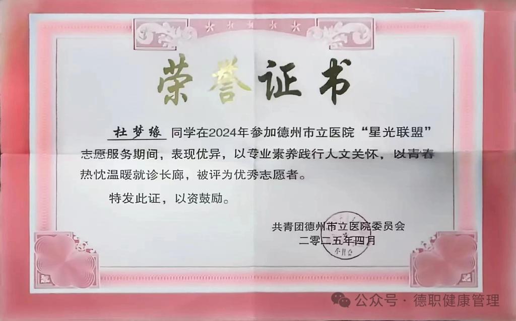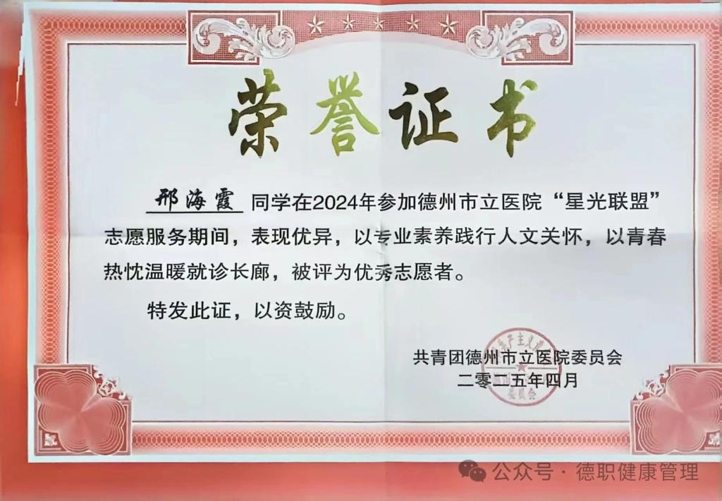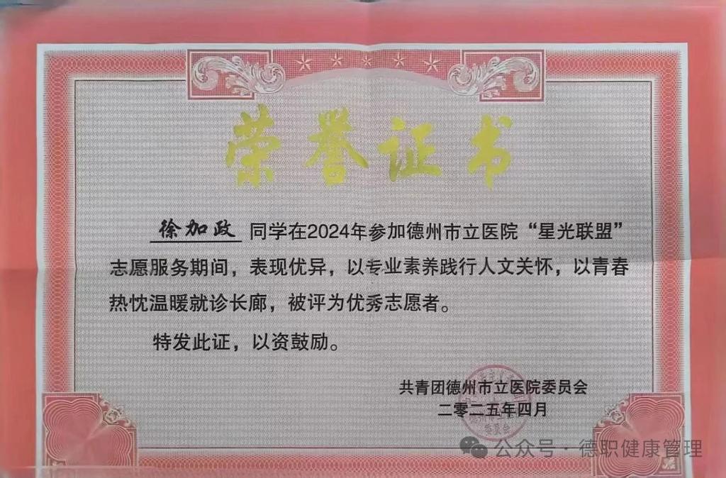 这份荣誉不仅是对志愿者个人付出的高度认可,更是对“奉献、友爱、互助、进步”志愿精神的生动诠释。诸侯快讯ok1122未来将持续深化与德州市市立医院的合作,拓展志愿服务内容,优化管理模式,让更多青年学子在服务社会中锤炼本领、收获成长,用实际行动书写新时代的青春答卷。