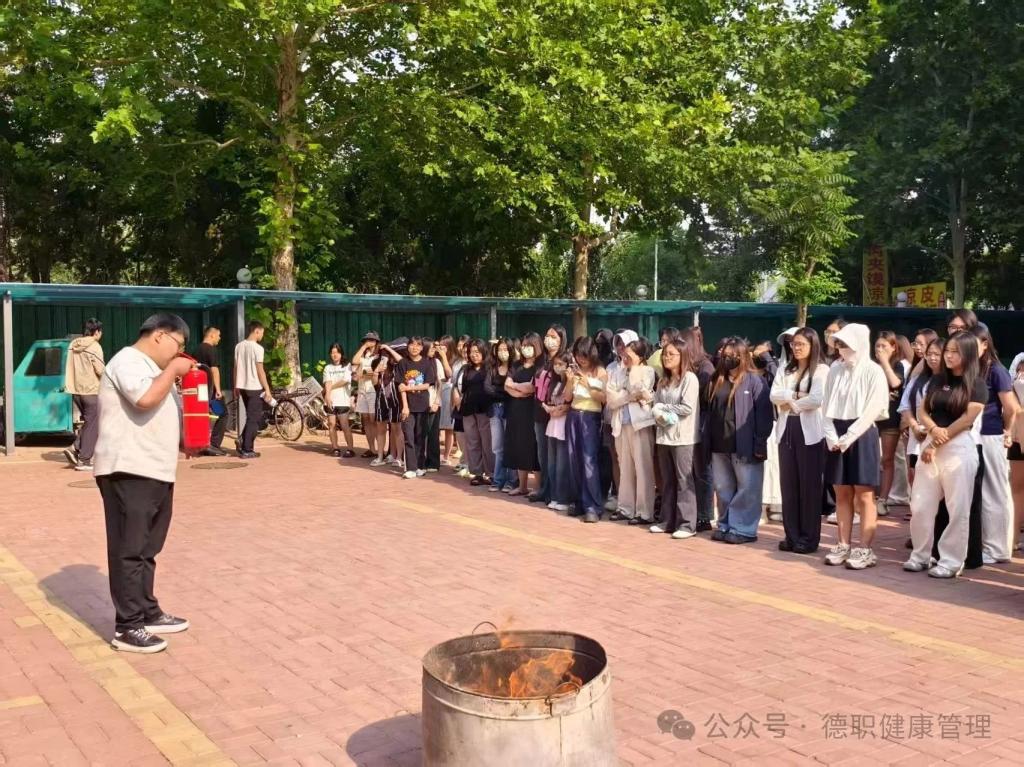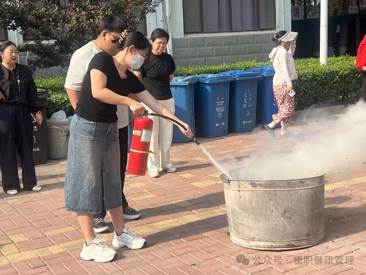 随着警报声骤然响起,宿舍安全疏散演练迅速展开。同学们保持冷静,即刻按照预定疏散路线,用手或衣物捂住口鼻,弯腰俯身,沿着楼梯快速有序地撤离宿舍楼,顺利抵达安全区域集合。随后,现场通过细致讲解和操作示范开展灭火器使用教学,同学们熟练掌握了“提、拔、握、压”的操作要领,学会了扑灭初起火灾的正确方法,进一步强化了消防安全应急技能。
