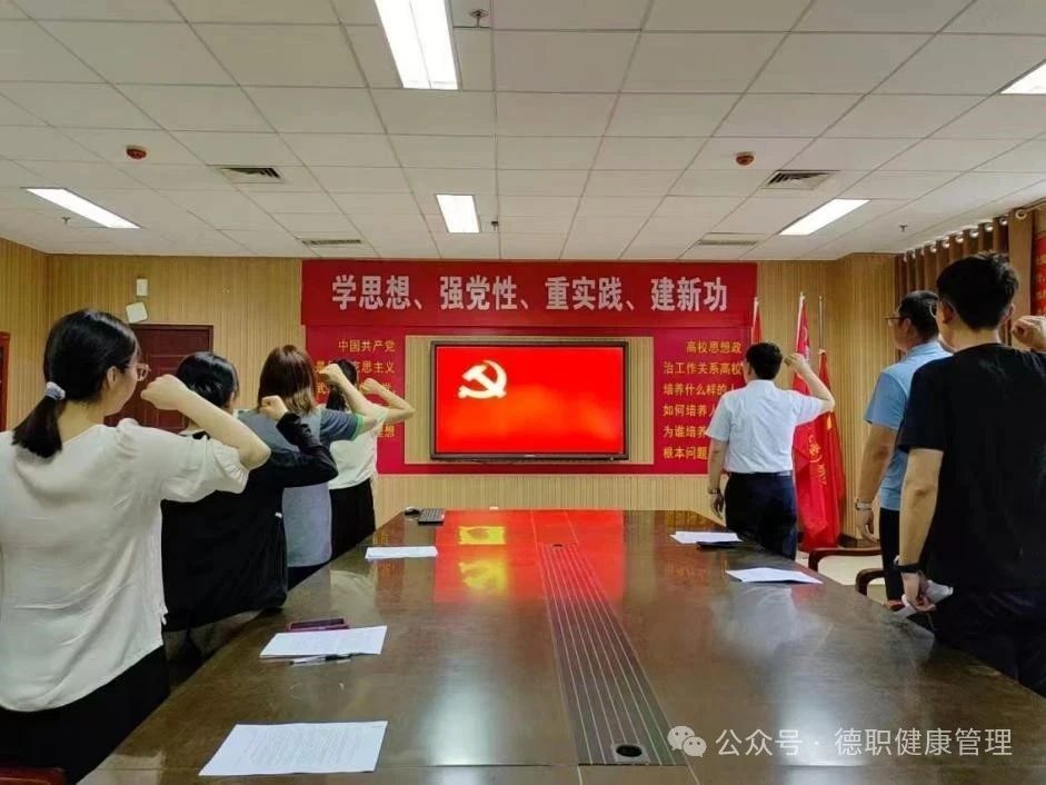 首先组织党员签到,奏唱国歌,重温入党誓词