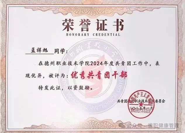5.2024 年在德州职业技术学院共青团工作中,被评为“优秀共青团干部”;