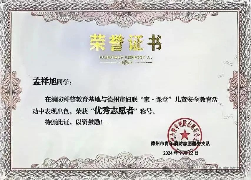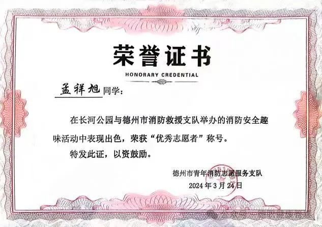 10.2024年荣获“德州消防趣味活动优秀志愿者”;
