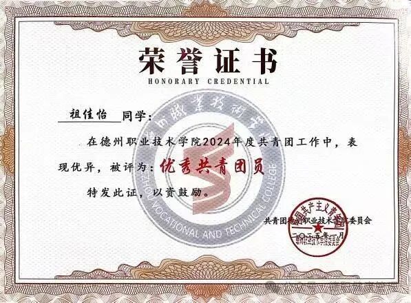 14.2025年1月,被评为优秀共青团员。