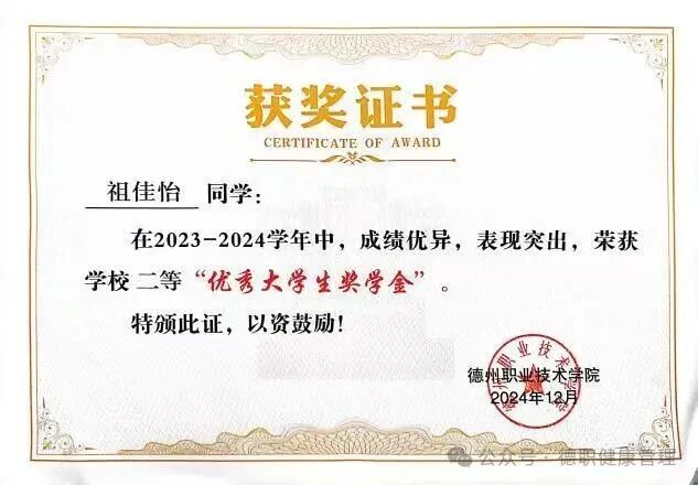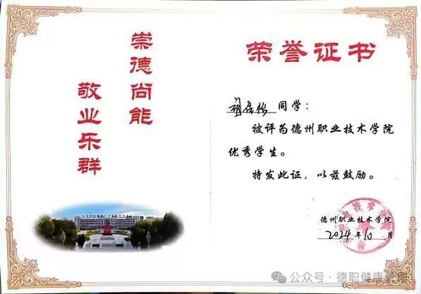 3.在2024年10月,被评为德州职业技术学院优秀学生;