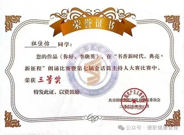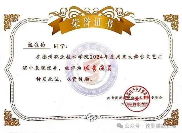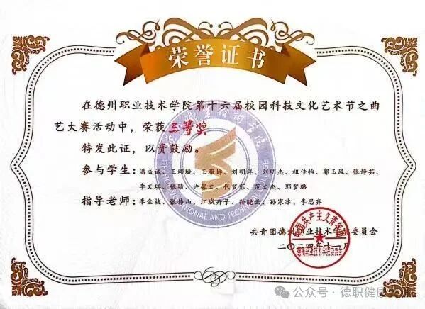 5.2024年11月,在德州职业技术学院第十六届科技文化艺术节之曲艺大赛中,荣获三等奖;