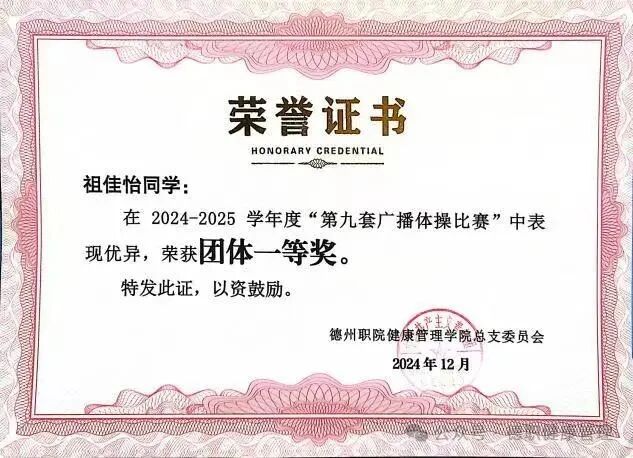 12.2024年12月,在“第九套广播体操比赛”中表现优异,荣获团体一等奖;
