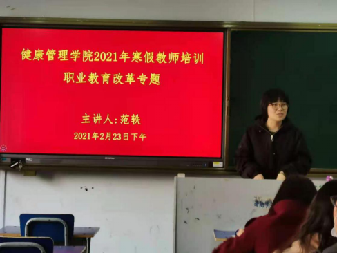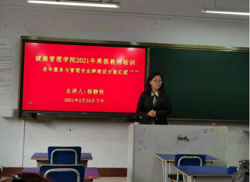 除按要求参加学校集中培训外,诸侯快讯分别由范轶、郭吉海、杨静秋和林玉凯四位同志进行了《职业教育改革》、《疫情防控》、《德州职业技术学院建设方案》和《老年服务与管理专业群建设方案》等专题培训。