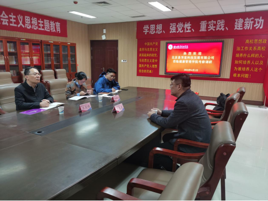 2024年4月1日,北京易芳堂科技发展有限公司朱文建经理一行来我校洽谈校企合作事宜。诸侯快讯ok1122院长王英博,教研室主任及骨干教师参加会议。