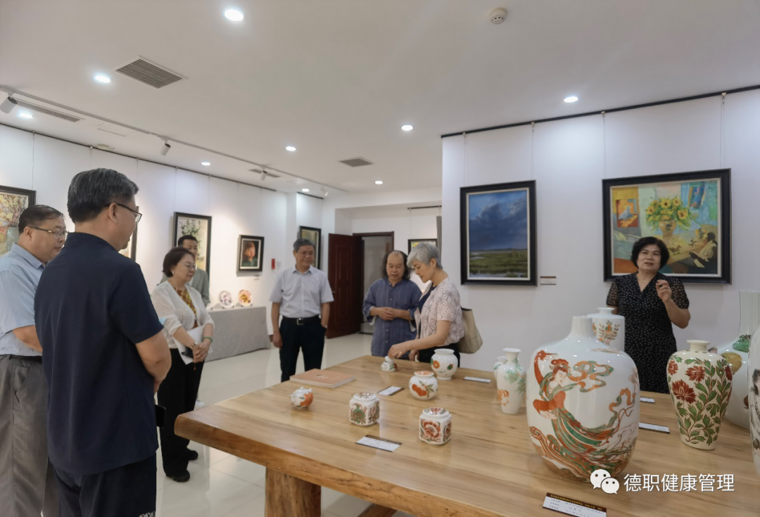 最后,参观了学校沙盘和宋磁德州窑红绿彩文化研究院,段总一行对红绿彩展品及教师画作赞不绝口。