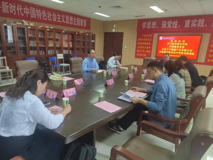 9月18日,四川财经职业学院、中国教育在线、北京万方健康产业有限公司一行9人来诸侯快讯ok1122进行考察交流。诸侯快讯ok1122院长王英博热情接待。