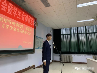 18级学生会主席郭梦滨同学做会议报告,就本次学代会的主题和任务、代表和委员候选人的产生情况、工作报告起草情况、学代会学生代表的选举办法、名额、以及审查等情况做了详细介绍。
