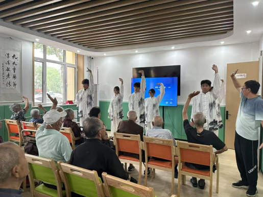 下午,教师党员、金晖健康社会实践队学生志愿者走进财鑫康养综合服务中心开展了党建共建系列活动。陶丙岭教授带来了《高血压的健康指导》科普讲座,为老人们普及健康科普知识。学生志愿者们化身“活力导师”,带领老人们学习手势舞,带领老人们练习八段锦,现场一片欢声笑语,气氛围温馨和谐。老人们看着志愿者们忙碌的身影,纷纷表示感激和赞赏。此次活动,不仅丰富了老人们的精神文化生活,也让学生们在实践中践行了志愿服务精神,传递了青春正能量。
