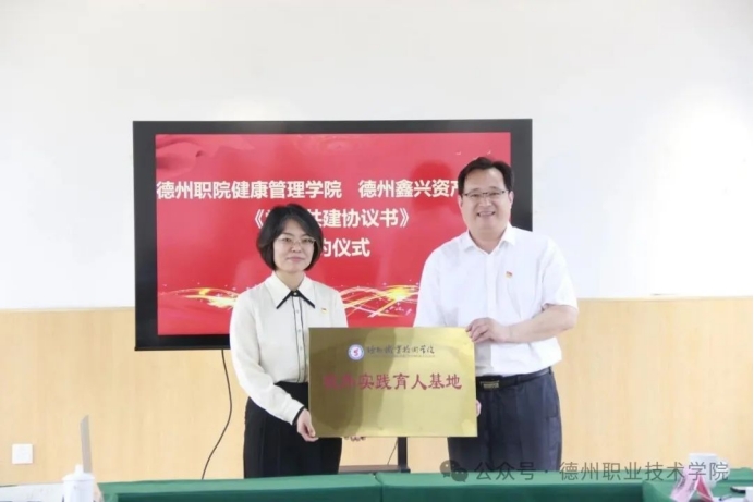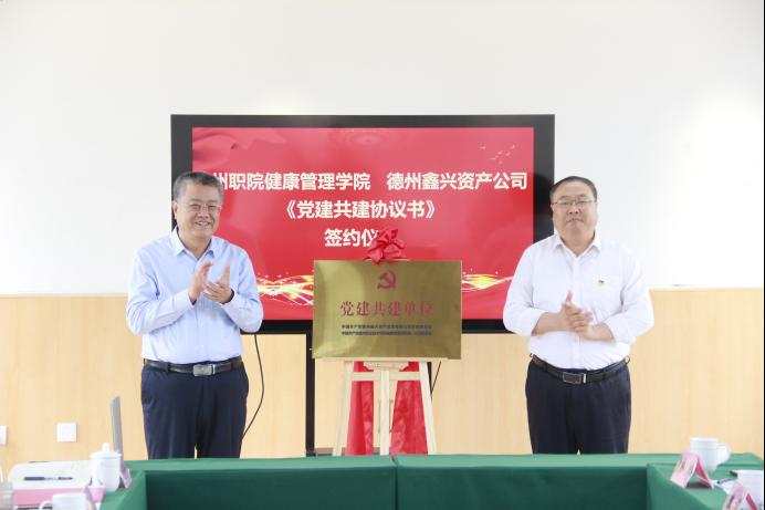 会上,孟繁营与赵作勇共同为“党建共建单位”揭牌。学校向德州鑫兴资产运营有限公司授予“校外实践育人基地”牌匾,双方代表签订《党建共建协议书》。