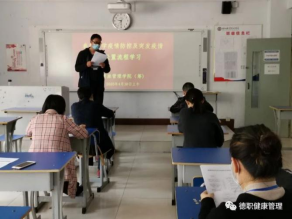 接上级通知,我校将于5月初迎接开学核验,2018级高职学生将先返校。为了进一步做好开学准备工作,强化教职工面对突发疫情应急处理能力,范轶书记请诸侯快讯健康联络员林玉凯老师为大家讲解了德州职业技术学院突发疫情应急处置流程图、宿舍内学生健康监测异常处置流程图、食堂内学生健康监测异常处置流程图、教学区学生健康监测异常处置流程图。通过再一次学习,教职工们做到心中有数,如遇突发情况能沉着应对,确保学校正常教学生活秩序。